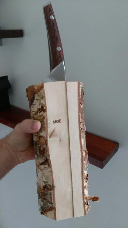 Valmis kokonaisuus, jossa leimasinlaatta on kiinnitetty puunupilliseen teräsvarteen. Lämmitetään ulkoisella lämmönlähteellä, kuten liedellä, nuotiossa tai kaasuliekillä.